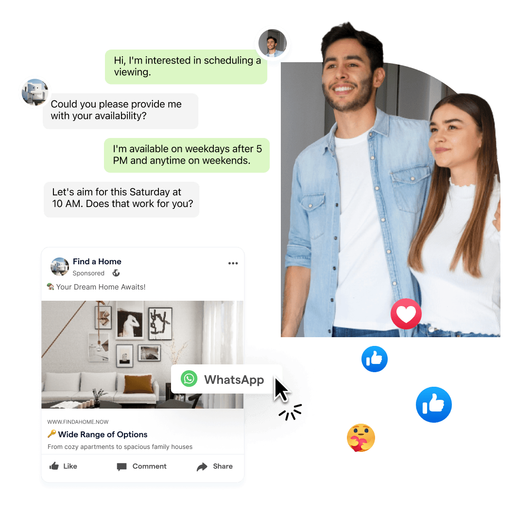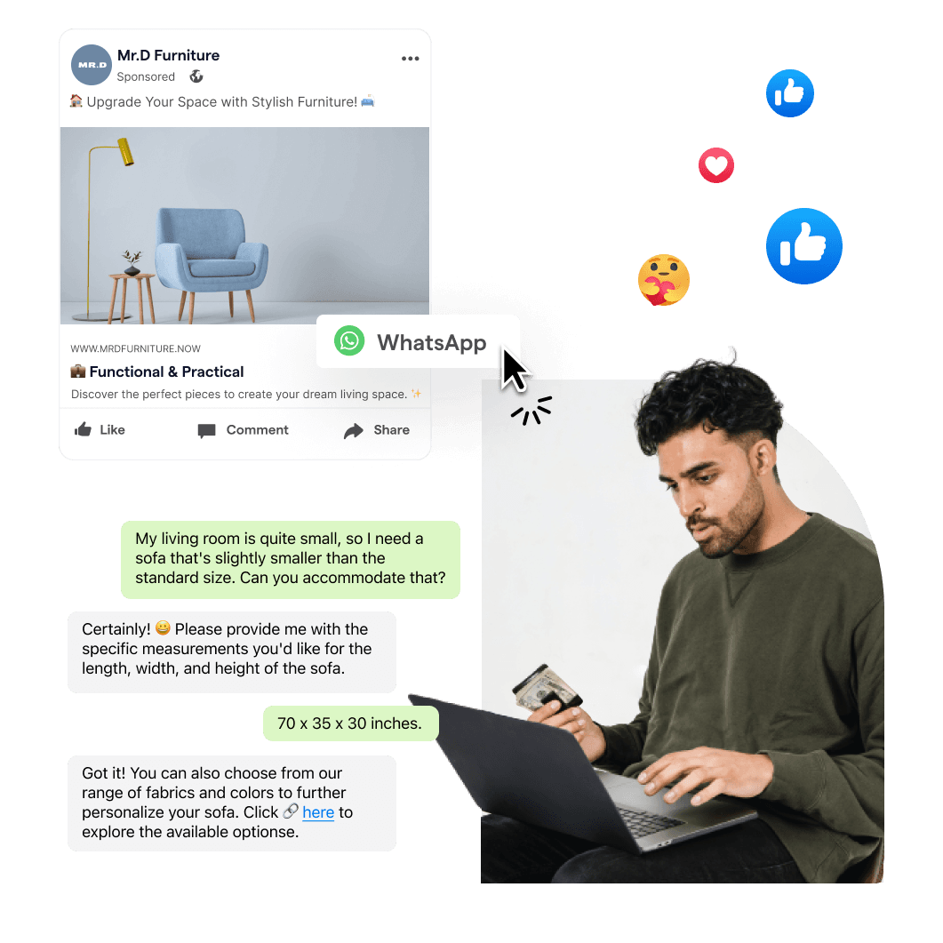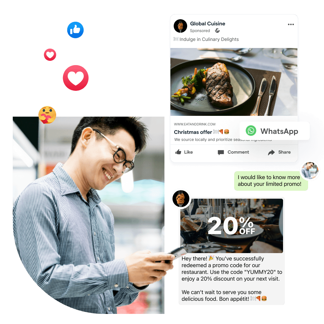 Werbekunden durch automatische WhatsApp Workflows zum Kauf Ihrer Produkte anleiten. Währenddessen Kundendaten erfassen, um effektive Retargeting Kampagnen durchzuführen und Leads schneller und günstiger konvertieren als Anzeigen ohne Interaktionen.