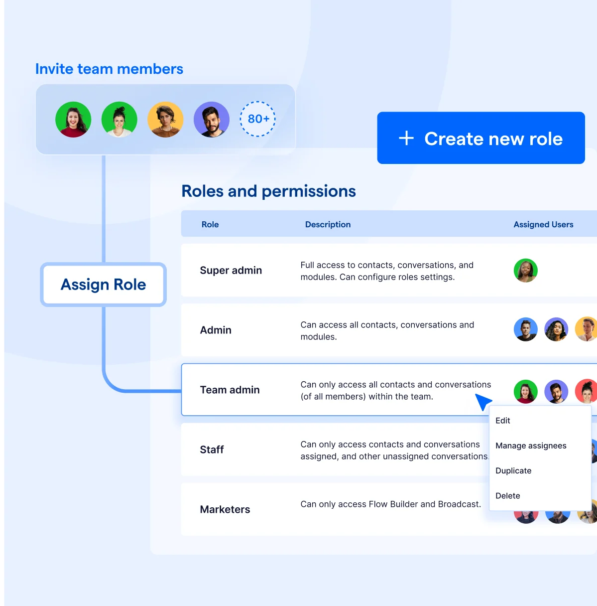 Every department has its own responsibilities, so why should they all have the same access? SleekFlow’s RBAC lets you create custom roles for different teams, ensuring they only see and manage what’s relevant to their job. No more sales agents tinkering with marketing workflows or IT teams accessing sensitive customer data!