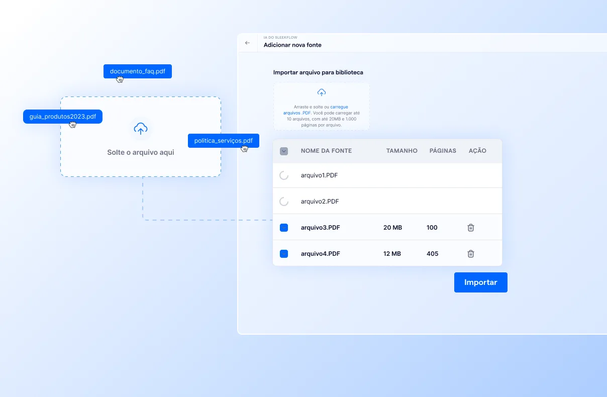 Quando os clientes visitam seu site e precisam de ajuda, você pode tornar a experiência mais fluida utilizando os chatbots com IA do SleekFlow.